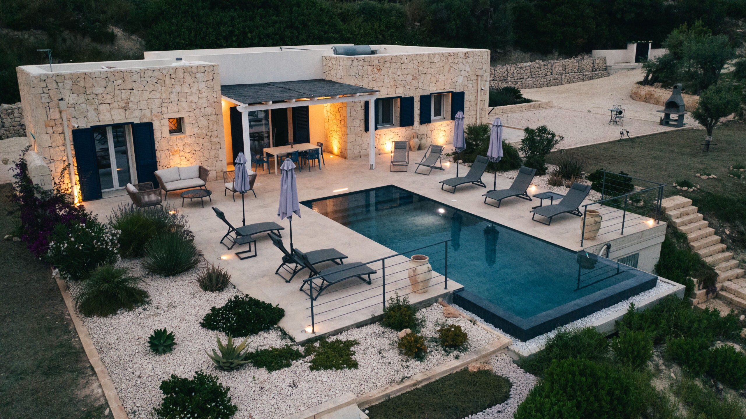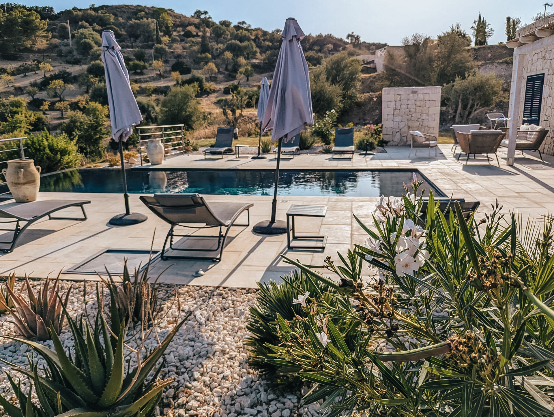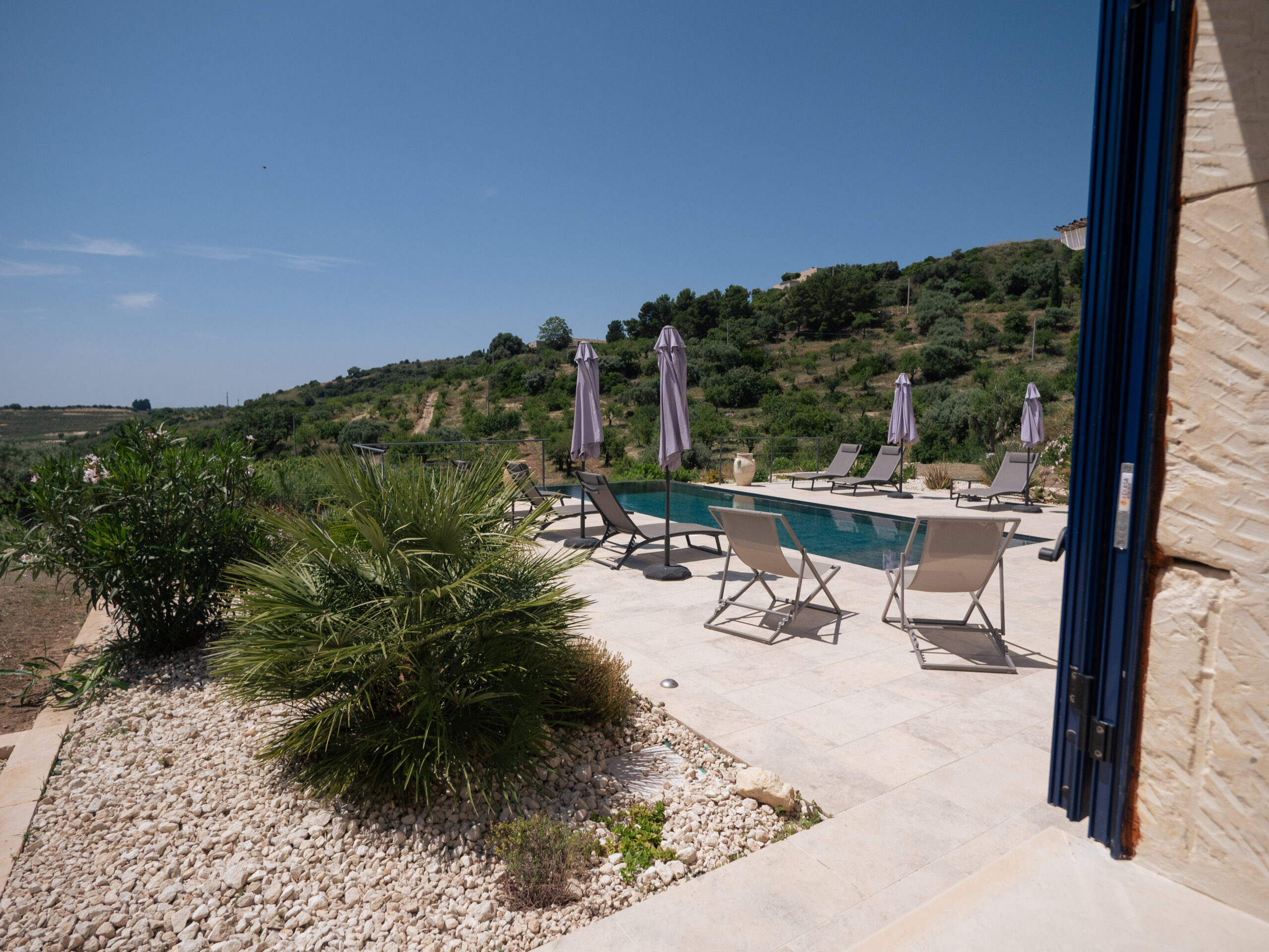 La piscine n’est pas chauffée artificiellement, mais la villa étant ouverte uniquement durant les mois estivaux en Sicile, l’eau profite pleinement du soleil et atteint naturellement une température agréable pour la baignade, idéale pour se rafraîchir tout en restant confortable.